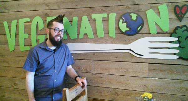 Travis Schwantes, at the Vegenation. Travis was busy directing some redecorating of the restaurant, but he took the time to answer my questions.